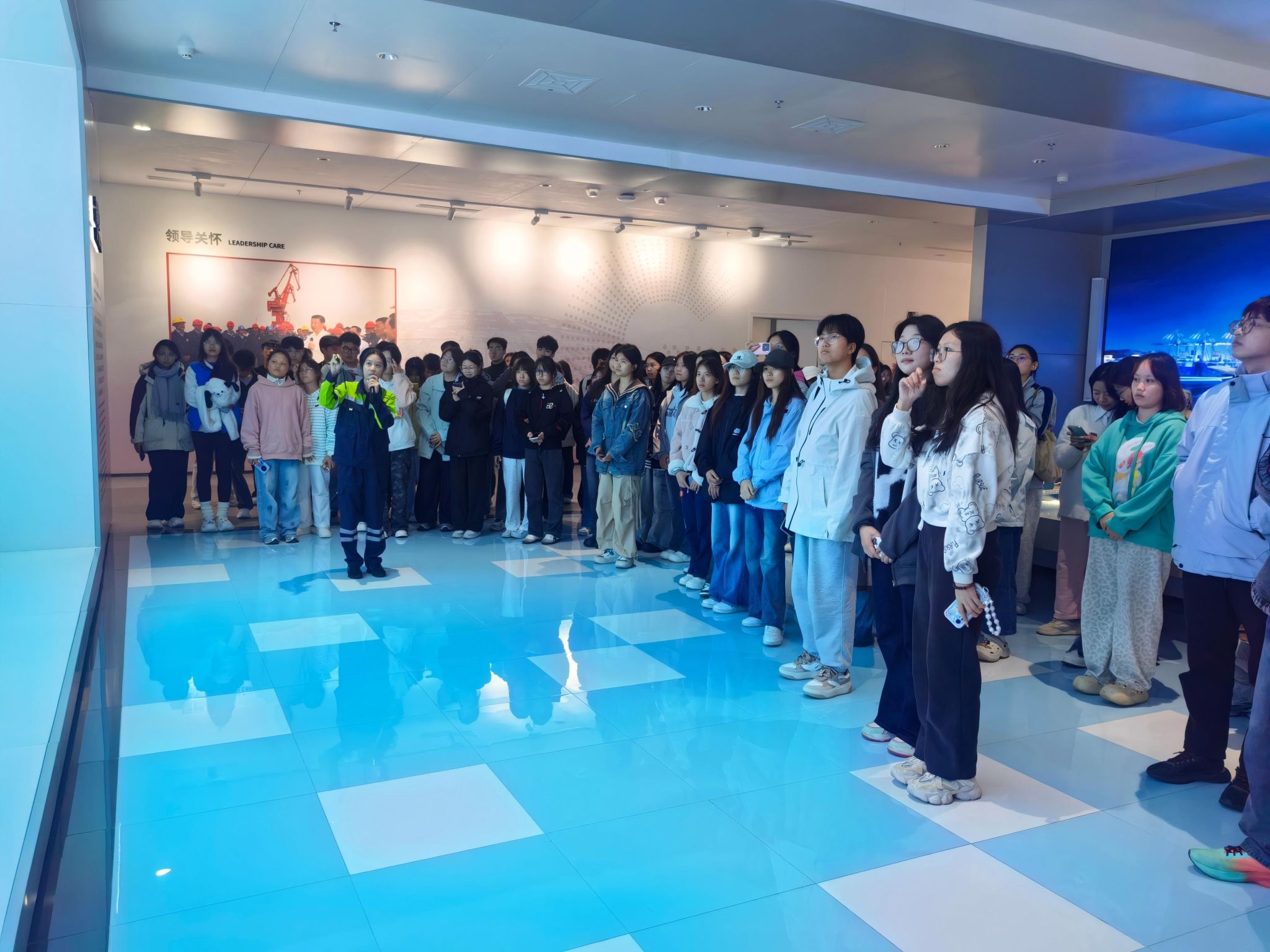 为让国际经济与贸易专业新生深度感知中国(广西)自由贸易试验区钦州港片区在特色贸易领域的创新实践,2025年11月4日,经济管理学院国贸教研室组织162名大一新生到自贸开投集团冷链保税交易中心、钦盛酒库及北部湾港钦州智慧码头见习。