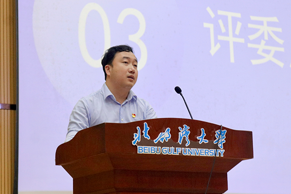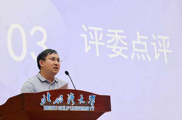 比赛尾声,北部湾大学2013届毕业生、人保财险广西自贸试验区钦州港片区科技支公司副总陈天云校友对参赛选手的表现进行了精彩点评,并分享了他的择业、就业经历,为在校生提供了宝贵的职场视角与经验。