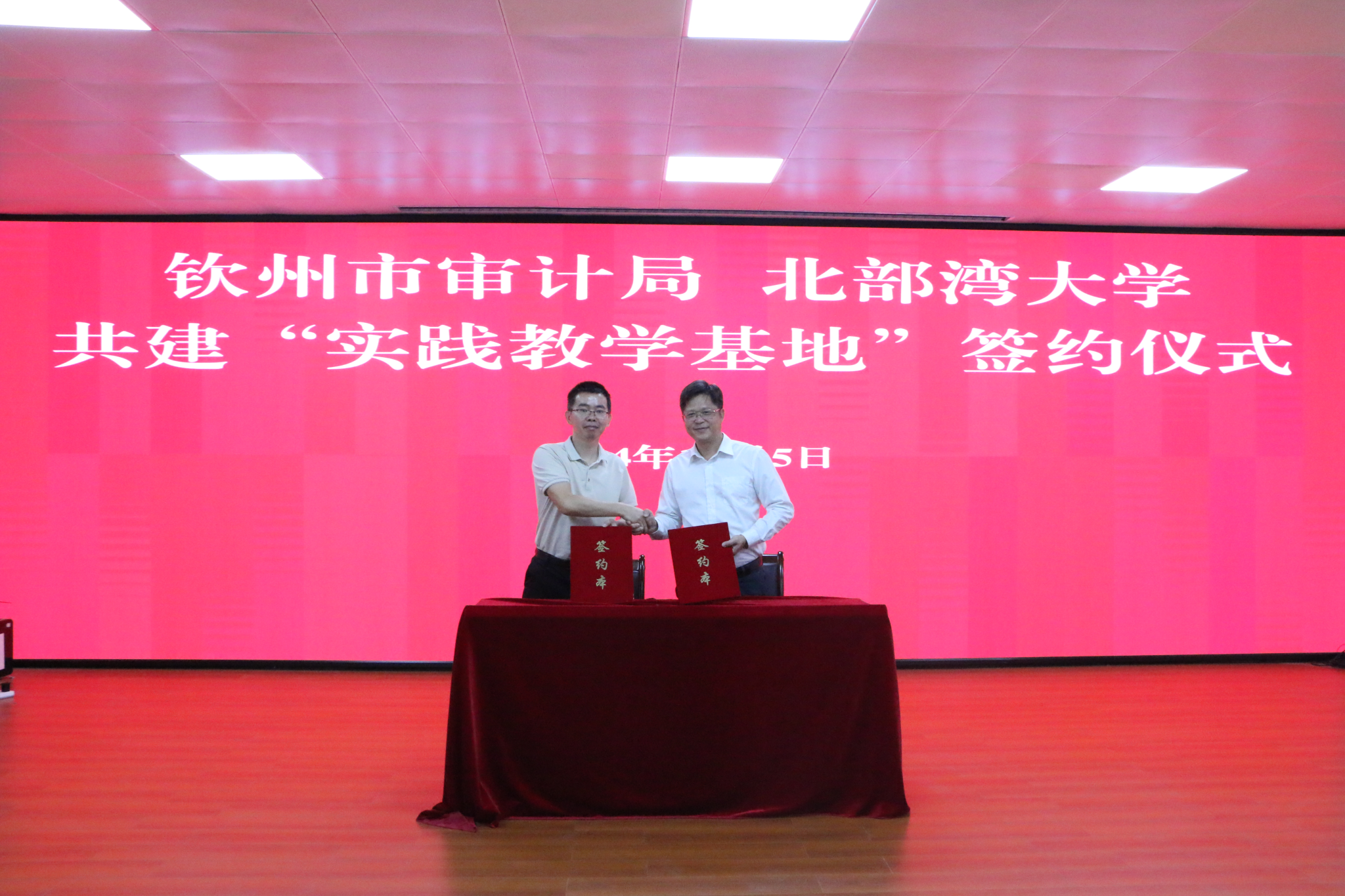 12月5日上午,我校与钦州市审计局举行了共建“实训教学基地”的签约仪式。钦州市审计局局长罗滨、副局长黄伟杰,学校经济管理学院朱念院长、副院长占金刚代表双方签署共建实践教学基地协议。财管教研室相关教师参加仪式。