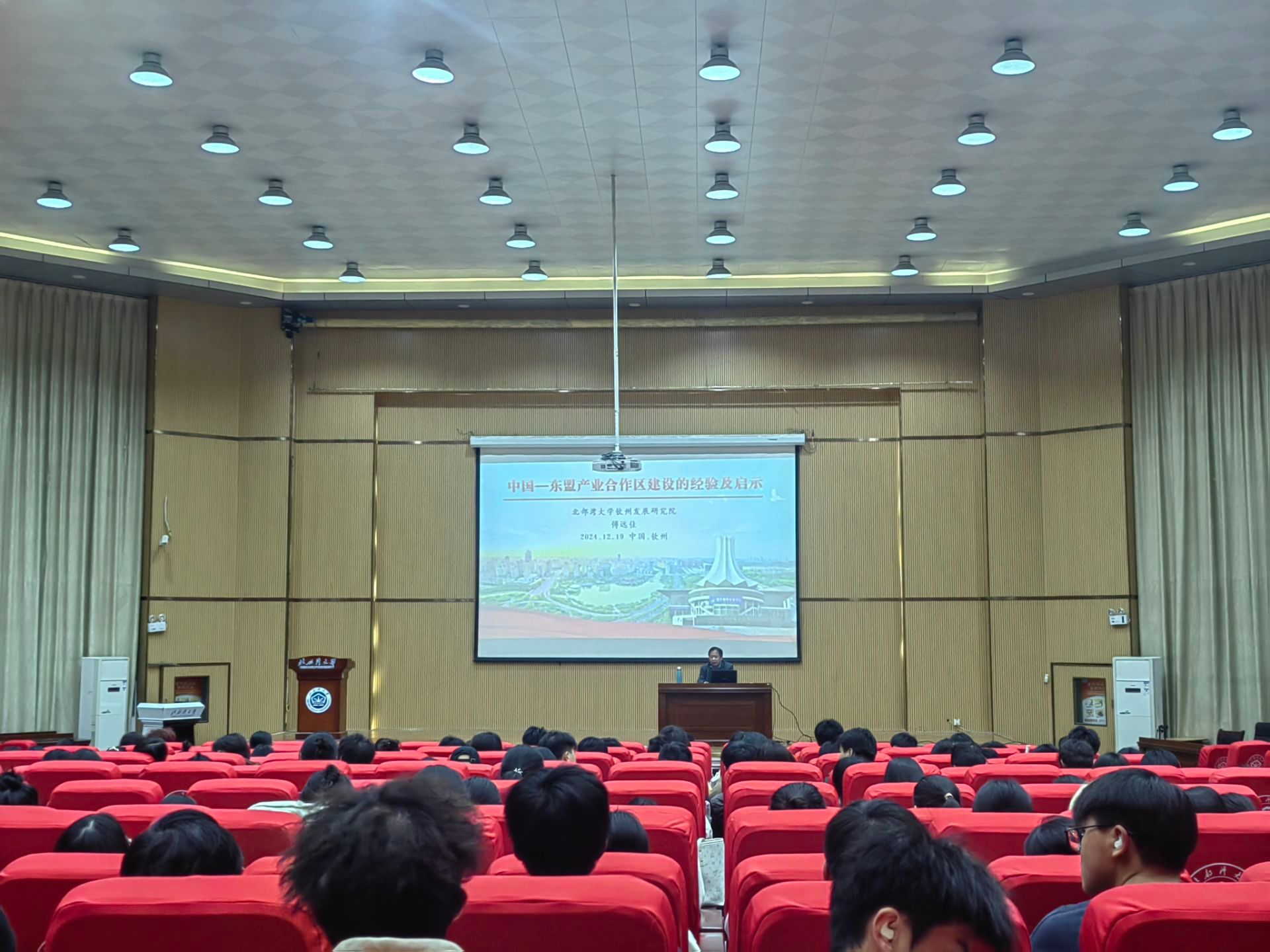 2024年12月18日,北部湾大学经济管理学院傅远佳教授应邀为国际经济与贸易专业“北部湾经济区专题”课程作专题讲座,主题为“中国—东盟产业合作区建设的经验及启示”。本次讲座吸引了众多学生参与,现场气氛热烈。