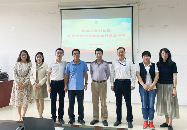 会上,庄教授首先根据其多年申报和评审国家项目的经验,针对国家社科基金申报书存在的共性问题作了全面的解读,耐心帮助老师们解决基金申报过程中的困惑和难点。然后采用现场“一对一”+“相互学习”辅导模式,由庄教授逐一对每份申报书的选题和内容作出专业的指点和点评,同时老师们全程在场互相听取修改建议并学习借鉴。最后,庄教授还为老师们提出了针对国社科基金申报的六句金玉良言:第一,问题提出要立足中央政策和实际问题;第二,国内外研究学术史可按照时间演进来梳理;第三,研究综述要重点突出自身研究贡献所弥补的不足;第四,学术价值重在理论丰富,应用价值则重在决策参考;第五,研究内容注重论述和表现其相互反馈的逻辑关系;第六,利用比较法体现创新之处,研究方法需对应研究问题。