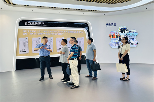 随后,梁副校长带队来到广西金桂浆纸业有限公司。在参观了企业的生产线和展示中心后,他对金桂浆纸在环保节能和技术创新方面的成就表示钦佩。梁副校长表示,希望与企业紧密合作,为地方经济的绿色转型贡献力量。