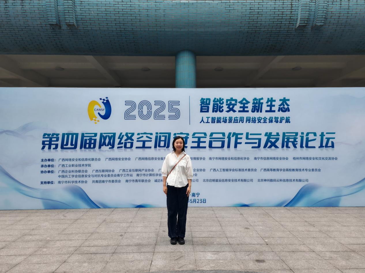 5月23日上午,第四届网络空间安全合作与发展论坛于广西工业职业技术学院成功举办。经济管理学院教师代表潘柳榕应邀参会。