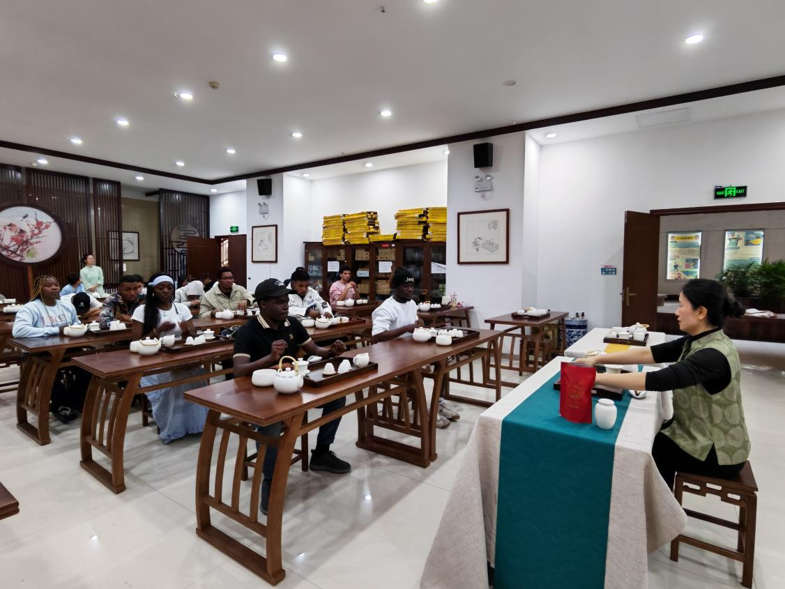 “这太奇妙了!泡茶就像与树叶对话,需要耐心和尊重。”一位巴基斯坦留学生分享道。围坐品茗时,不同国家的青年以茶为媒,交流体验,笑声与茶香交融。这小小的一盏茶,成为了超越语言的文化桥梁,促进了心灵的相通。
