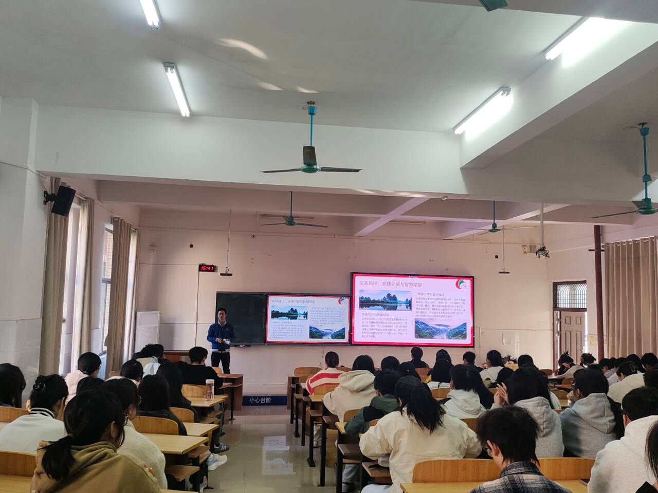 为深化学生对社会工作的认知,搭建专业学习与基层治理实践的衔接桥梁,拓宽职业发展维度,2025年12月25日下午15:00-17:00“社会工作赋能基层治理——认知、实践与职业发展”主题讲座在4号楼101阶梯教室顺利举办。本次讲座特邀乐益行社会工作服务中心的区域主管、高级社工师潘行登担任主讲嘉宾,公共管理教研室苏丽丽老师以及城市管理专业2022、2023、2024三个年级约90名本科生参加了此次讲座。