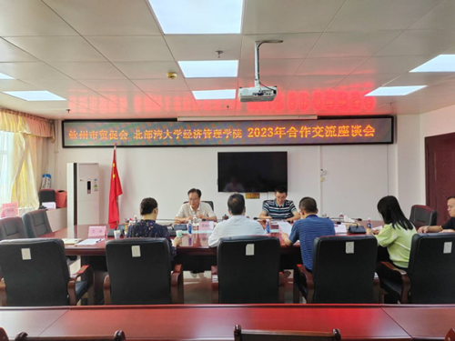 5月18日,经济管理学院院长朱念率队一行4人赴钦州市贸促会洽谈合作。钦州贸促会会长黄应增、副会长韦润小等领导参加座谈活动。