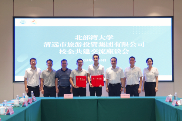 2025年6月20日上午,北部湾大学经济管理学院到访清远旅游投资集团,双方开展校企共建交流座谈会,举行签约仪式。经济管理学院党委书记许旭志,党委副书记、院长朱念,副院长占金刚,党委副书记、纪委书记姜国珍;清远旅游集团党委书记、董事长石雨,党委副书记、董事、总经理刘云龙,党委委员、副总经理张宇林,党委委员、纪委书记、监察专员李莉参加会议。