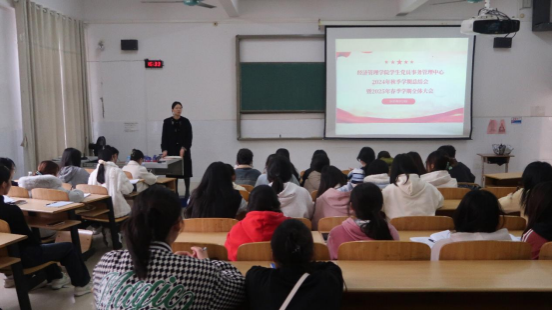 2025年3月18日下午,经济管理学院学生党员事务管理中心2024年秋季学期总结会暨2025年春季学期第一次全体会议于4-409教室召开,中心指导老师张啾、曾艳春及全体成员参会。