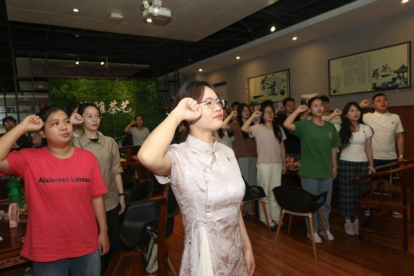 最后,在支部书记甘玲的带领下,全体党员重温入党誓词,庄严的宣誓饱含了党员同志们的斗志和勇气,也孕育着对未来的憧憬和期望。