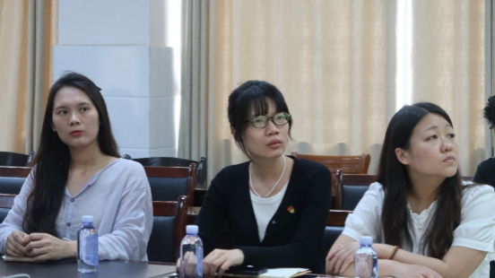 评委老师聆听汇报内容